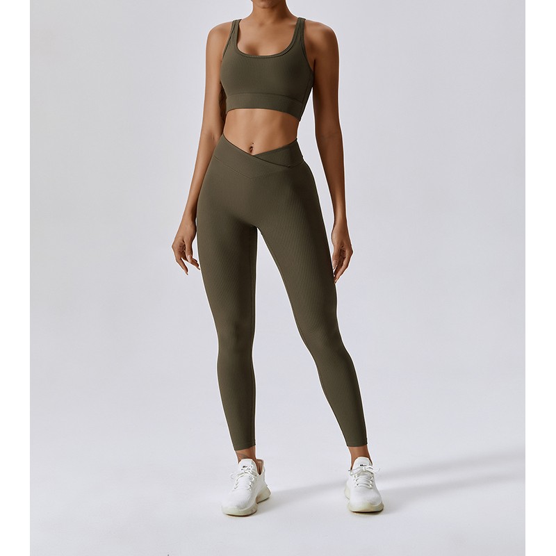 Custom Logo New Sexy Ribbed Women Sports Set. High Quality Cross Waist Leggings Yoga Workout Sets For Women. EvaRicky® stands as a dependable supplier, offering premium gym workout sets.